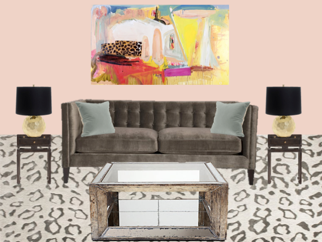 *sources: rug, sofa, paint (Ballet Slipper by Martha Stewart), art (see the leopard in it?), lamps, side table, pillows, and coffee table