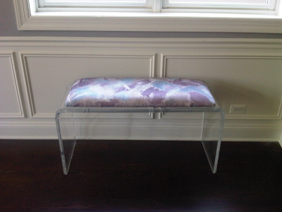 Gorgeous! I love anything lucite and the navy blue tufted velvet is sublime!