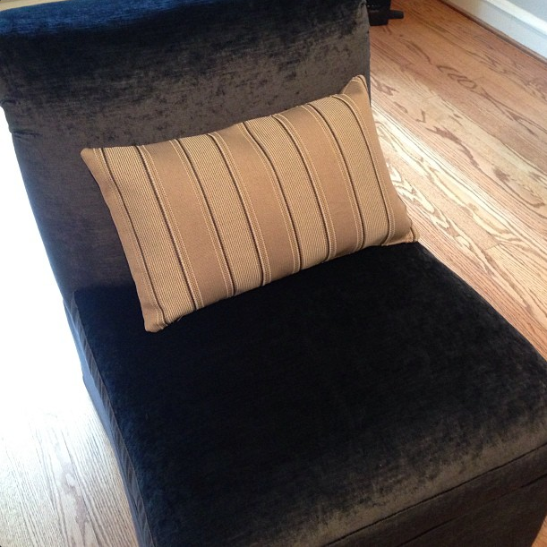 These gorgeous navy/charcoal-ish velvet slipper chairs look so pretty in their outfit (they used to be bubblegum pink)