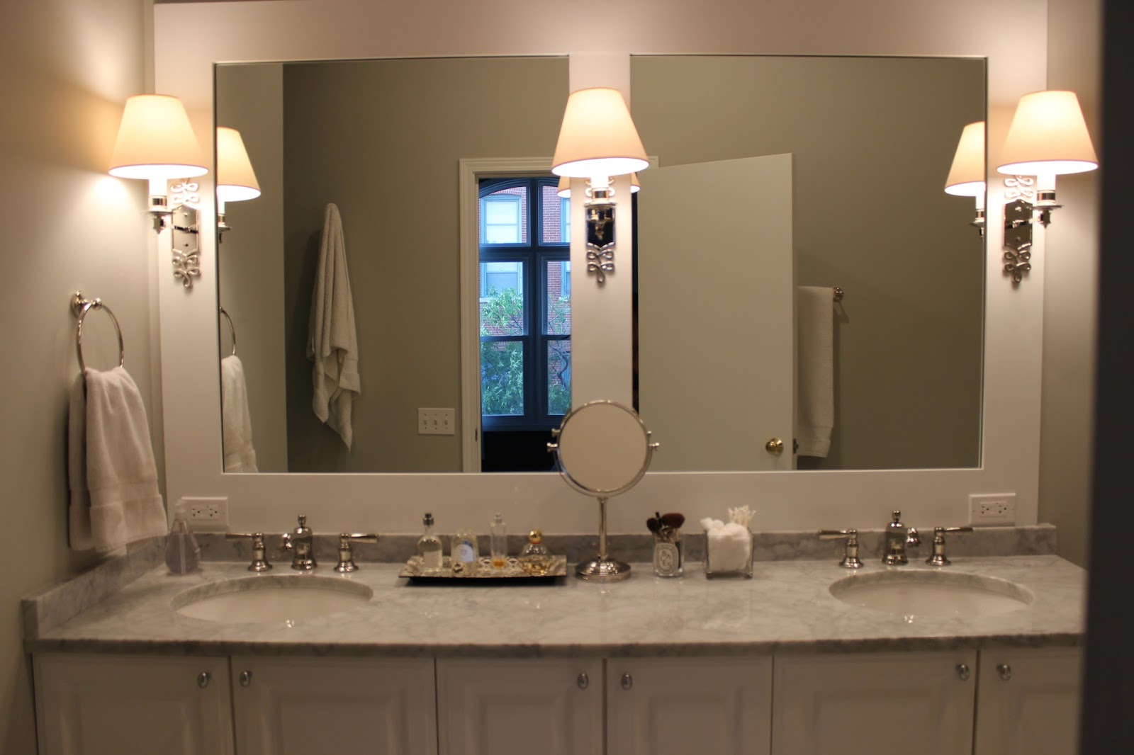 It looks amazing! The sconces add such a nice touch to the mirror. And I of course love the neutral colors. Perfection.