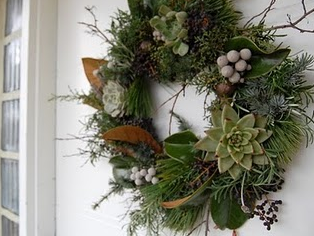 there are tons of ideas out there, but i think if i did it, i would make mine a litle more sparkly and festive. adding in some silver glitter and red holly. to me this don’t look like festive wreaths, more like year-round ones.