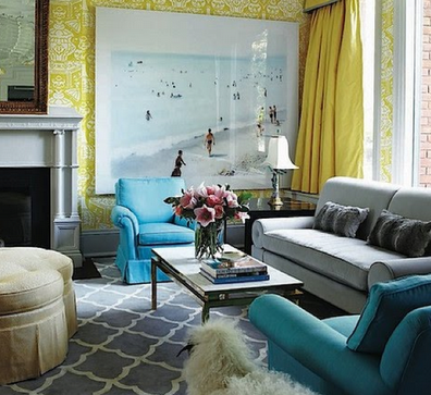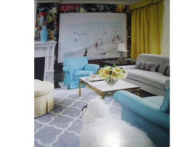 A while back I posted about this room. It actually made my little sister tear up she thought it was so beautiful. Then today, I was reading the new House & Home I saw that the designer, Victoria Webster, had redone the room. The crazy thing is, the room is entirely the same, except for the walls. And wow, do the walls change everything.