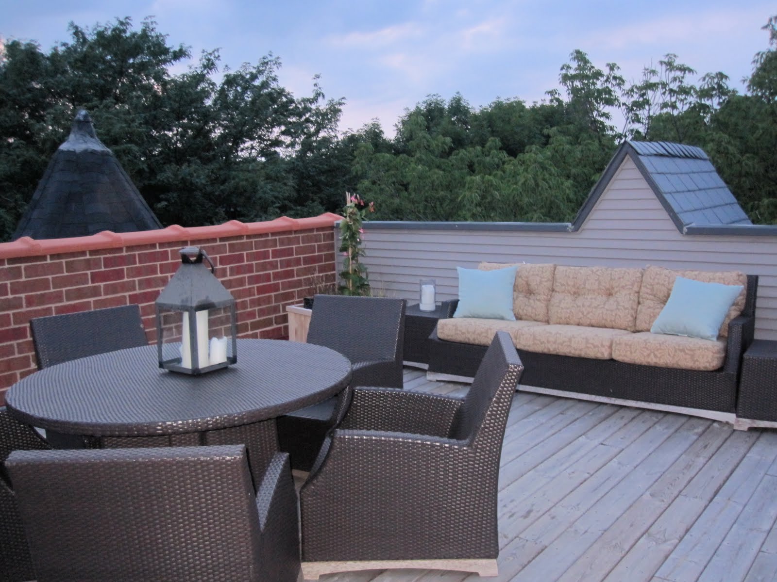 i figured i would share a couple pictures from our roof deck… since its my favorite part of our apartment. there are two sections, “laying out section” and “dining section”. its definitely not complete, i still have lots of ideas. but its getting there. and most of all, i am proud of my planters! they are flourishing!!