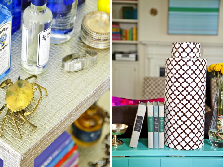 Are you DYING??? I am! I want every single thing. The pink chair with red piping? The snakeskin bar cart?