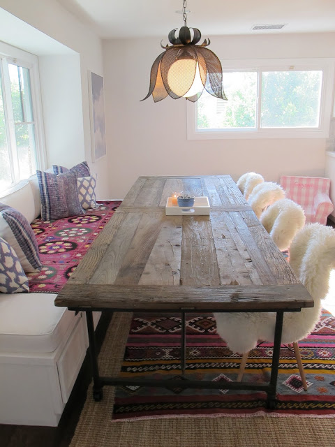 I have to honestly say I don’t have a favorite item however I do have a great love for my dining table. I love it for many reasons but mainly because it’s 112″ long and already ruined looking so when we have my huge family over for occasions such as Sunday dinners or Holiday’s we can’t see spilled wine or food particles. I never have to wipe it down, I just kinda rub the grime in and it adds character…really not hygienic….but Oh well!