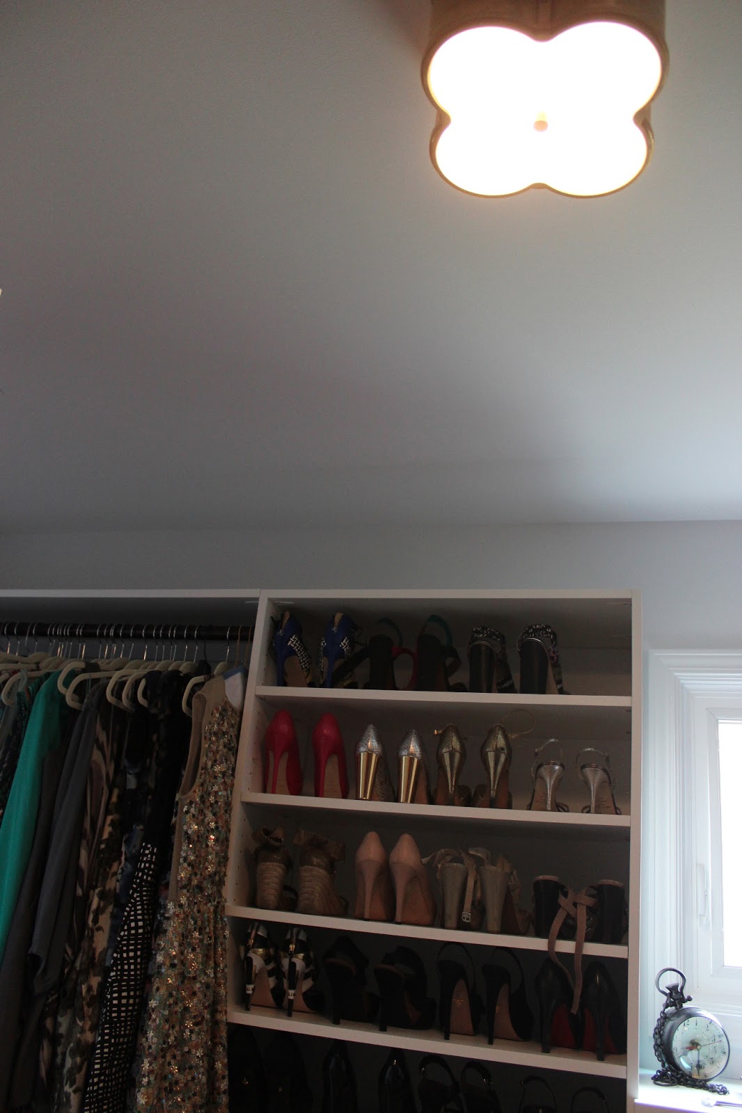 My closet. Completely in love. Between the brass clover light and shoe display, its perfection.