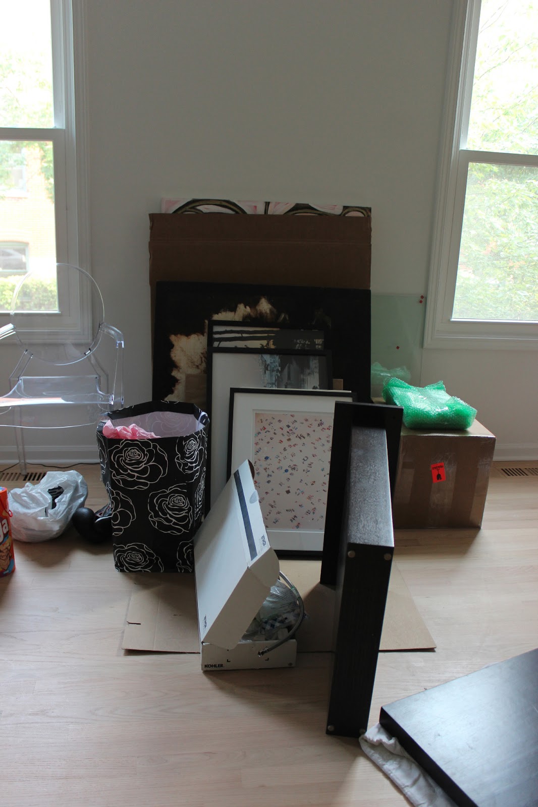 And just to keep it real… A pile of art, a faucet, boxes, a chair and a bag of games. Oh and half of our dining table.