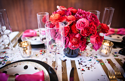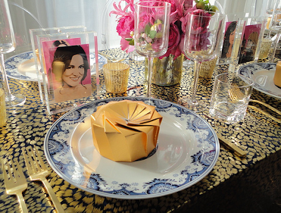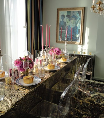 i’ve realized my favorite settings are the unexpected ones. the blue and white china with gold and pink. the pink bow napkins. the orange zebra tablecloth with traditional plates. the champagne sitting in snow. i just love these details.