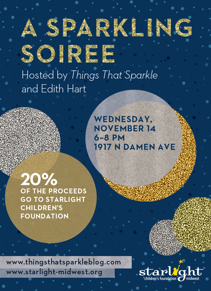 On November 14, Things That Sparkle will be hosting a holiday party at the fabulous Bucktown boutique, Edith Hart, owned by Miss Morgan Gutterman. 20% of all the proceeds from the evening will be donated to the Starlight Children’s Foundation. A charity that assists in improving the quality of life for seriously ill children and their families.