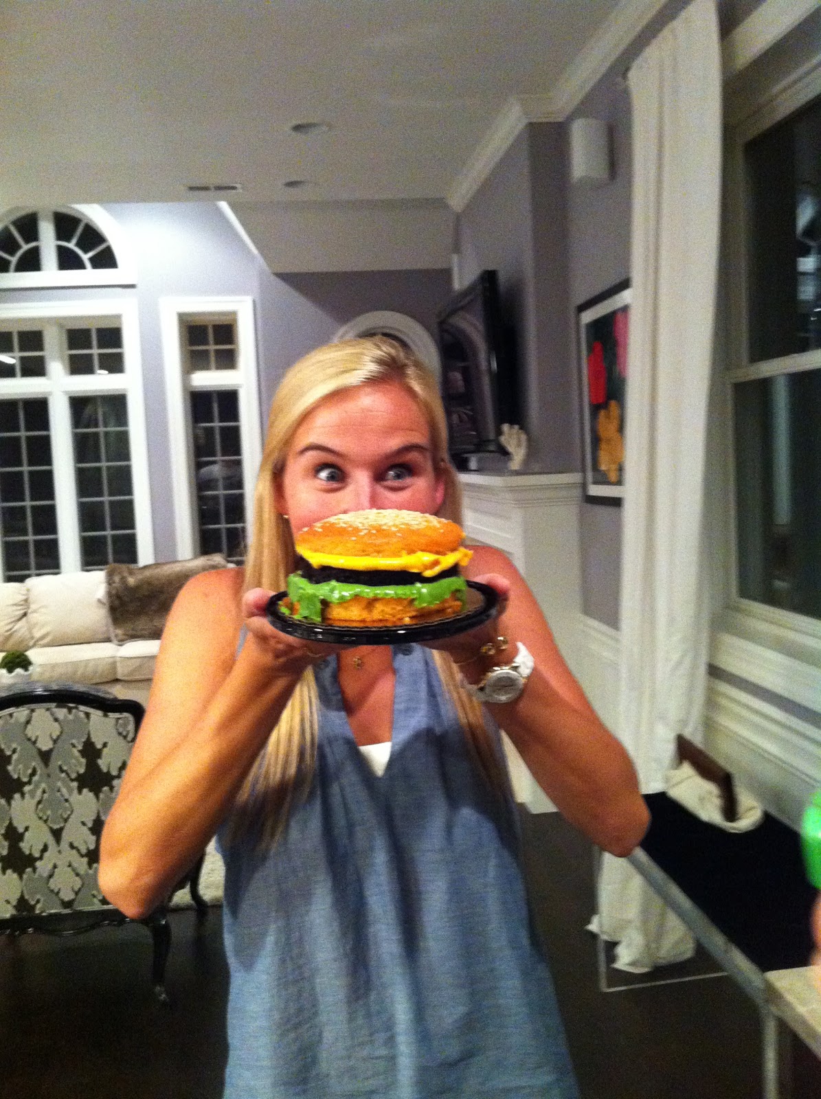 eating hamburger cakes (yes a cake, it tasted amazing) |