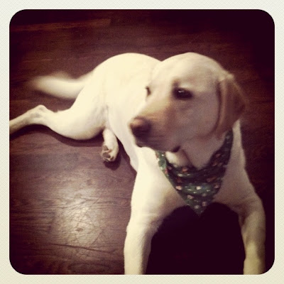 The Mav in his holiday bandanna. Look at that tail in action. He loves it. |