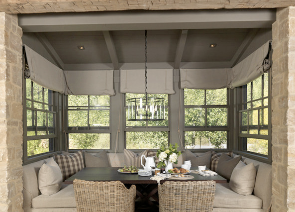 a reader shared this house with me, and i fell in love. had to show all of you! this is exactly what a cottage should look like. lots of woods, a warm, inviting color palate ( = grey). that bedoom, that eating nook, that entry… well all of it, i am in love with. to see even more pictures of this gorgeous getaway go to: desire to inspire