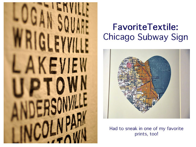 Now that I live in NYC, I love having a few reminders of where I came from: Chicago! My Mom sent me this subway sign that is on an old piece of linen, and I love it. It hangs in my tiny kitchen, and makes me smile each time I see it. Oh, and I had to add one of the prints I have that hangs above my couch — how cute (I also have a Dallas one)? (via)