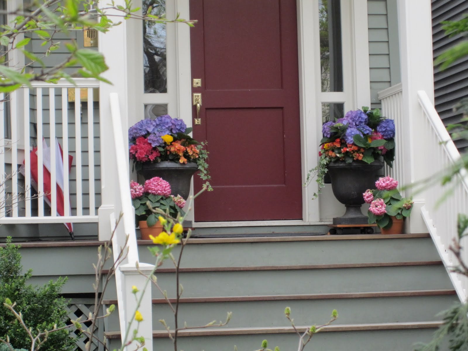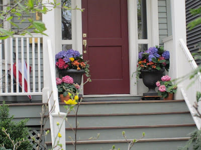 i was walking down my old block yesterday and spotted these flower pots. i just love the color. with my luck, the owners called the police on me for stalking, but i just had to take a pic. so springy and fun.