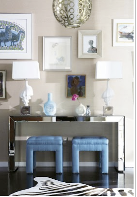 love this little spot. love all the different fabrics and textures: zebra, mirrors, silk + amazing lighting… sold.