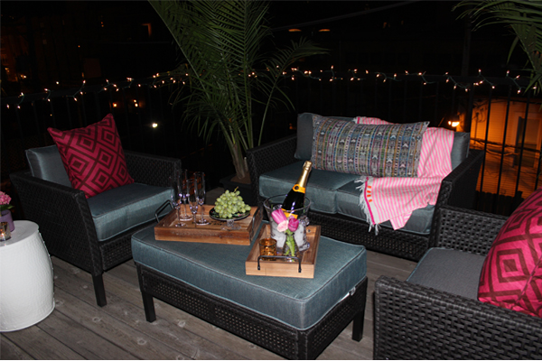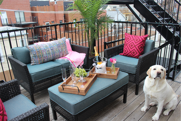 Living in downtown Chicago, we treasure our outdoor space but sadly, the little deck off our bedroom has always been ignored. We had a couple chairs to sit out there and read but no real attention had ever been paid to it. Enter Home Depot. When we were given this beautiful lounge set I knew exactly where it would go. It is the perfect spot to sit and read a book, or have girl friends over for cocktails.