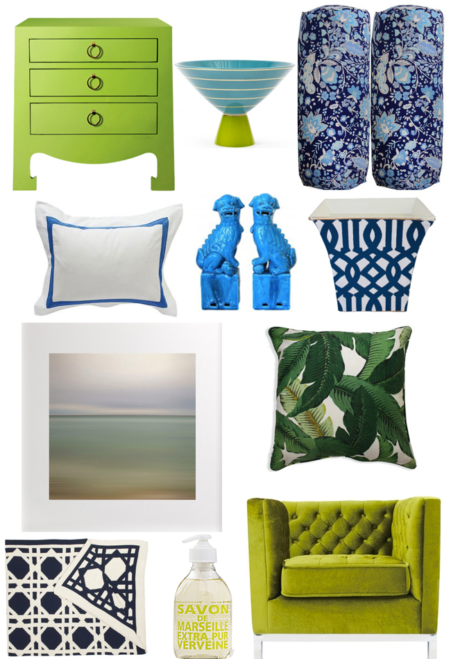 I love blue, white and green! Most of our house is green- it mixes well and creates such a calm, soothing space!