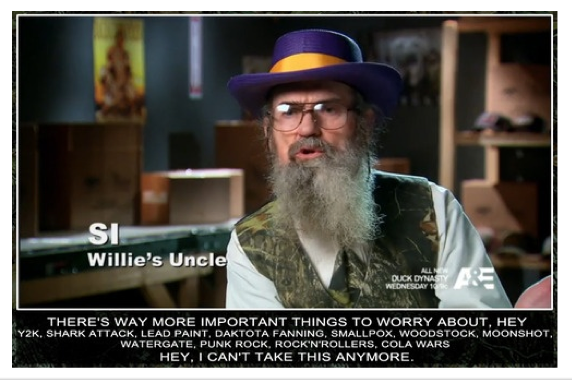 This is Si in his camo pimp outfit. And this is a real quote. Reality TV at its best. I love hillbillys.