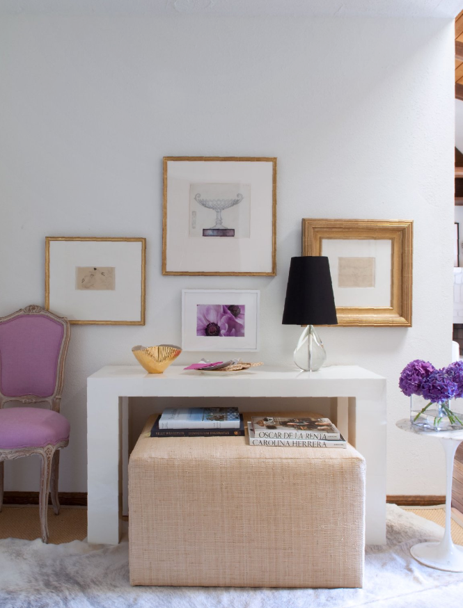 I am so excited to be here for “Favorite Interior Tuesdays”! This is such a fun series, and I am honored to be participating! I see so many homes that I love, its hard to pick just one, but this home from High Gloss Magazine really spoke to me. I actually don’t love purple (I’d replace it with pink), but I LOVE every thing else, so I think its ok!