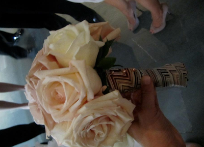 The wrap around the bouquet is so neat! Love the bridesmaid’s dresses, too!