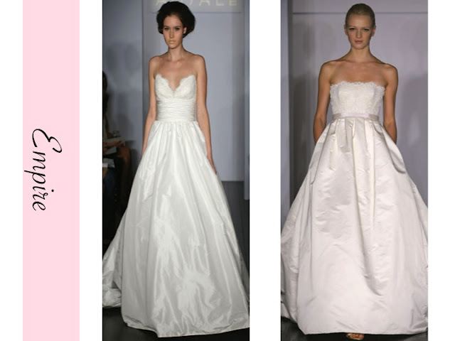 I love a good mermaid dress (my own dress was fitted throughout the length of it though), but that first empire dress is effing gorgeous! I would so make that mine if I were getting married again.