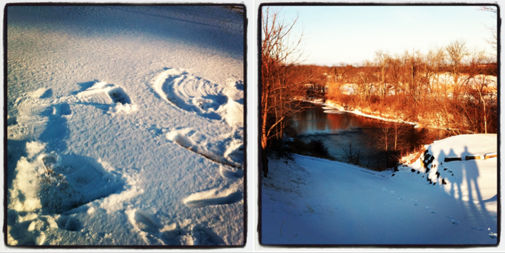 Yes. We made snow angels. Long story. Love this picture of us our shadows looking down on the river.