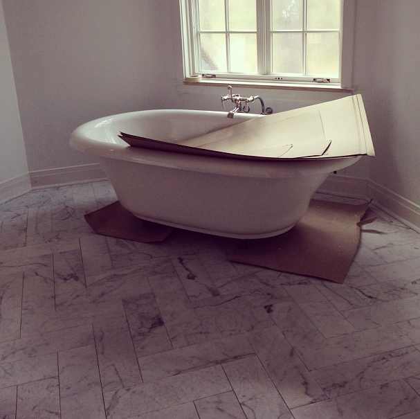I need those wine glasses in my life now. That bathtub and floor are to die for. Absolutely gorgeous!