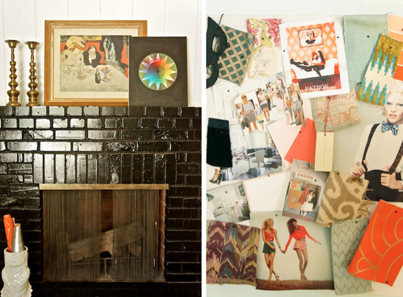 Love the office! The glossy black fireplace and that inspiration board! So fab!