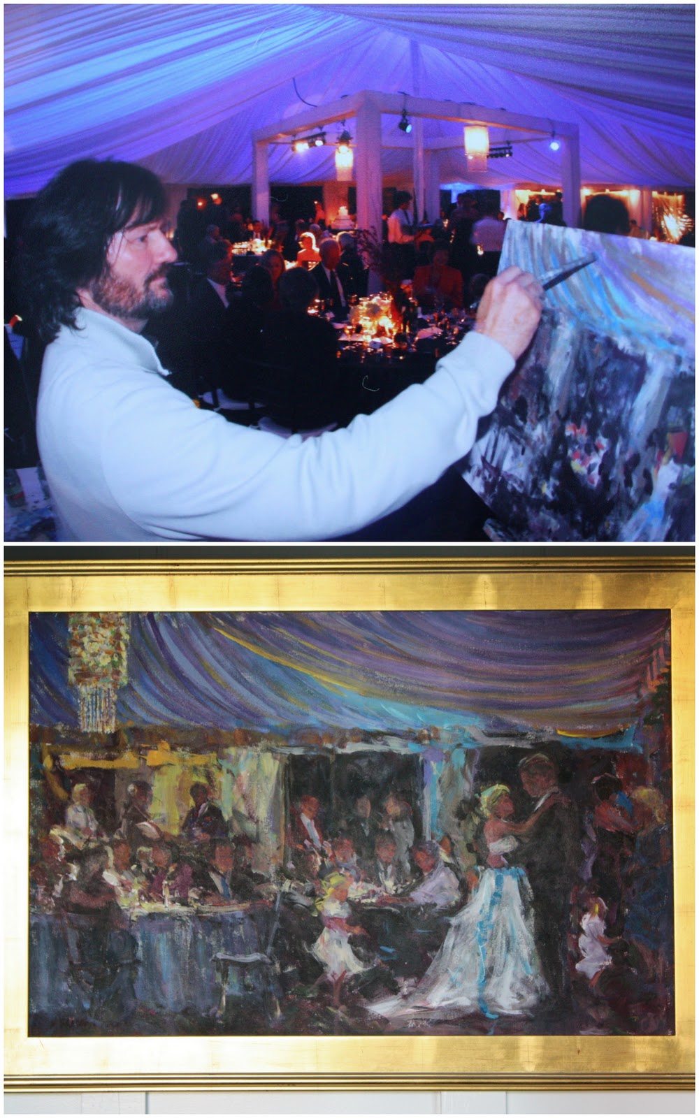 At our wedding 4 years ago we commissioned artist Danny McLaughlin to capture our reception as it unfolded. Today we have this beautiful painting hanging in our dining room as a reminder of that amazing day with all of our friends an family.